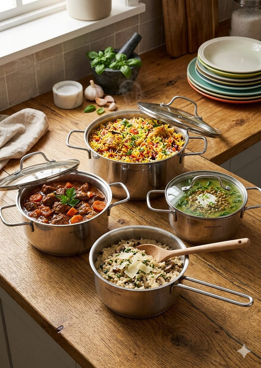 Oala din otel inoxidabil cu inductie, 7.8L, 24 cm, Thomas